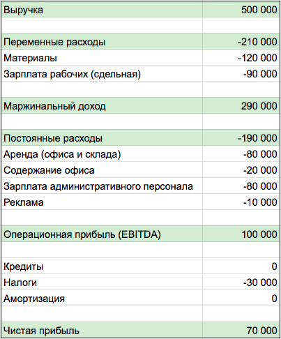 Постоянные расходы — те, что не зависят от выручки. Например, аренда офиса. Сколько бы у вас ни было выручки, за аренду вы платите одинаково. Переменные — это те, что напрямую зависят от выручки. Например, расходы на сырье для производства продукции. Чтобы получить больше выручки, вы должны продать больше продукции. Для этого — больше ее произвести. Значит, и на сырье потратите больше.