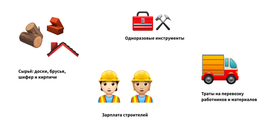 Сокращенная себестоимость включает траты на материалы, сырье и работу мастера, который её выполняет. Другими словами, это переменные расходы. Они зависят от количества оказанных услуг: чем больше домов строит компания, тем выше эта категория трат.