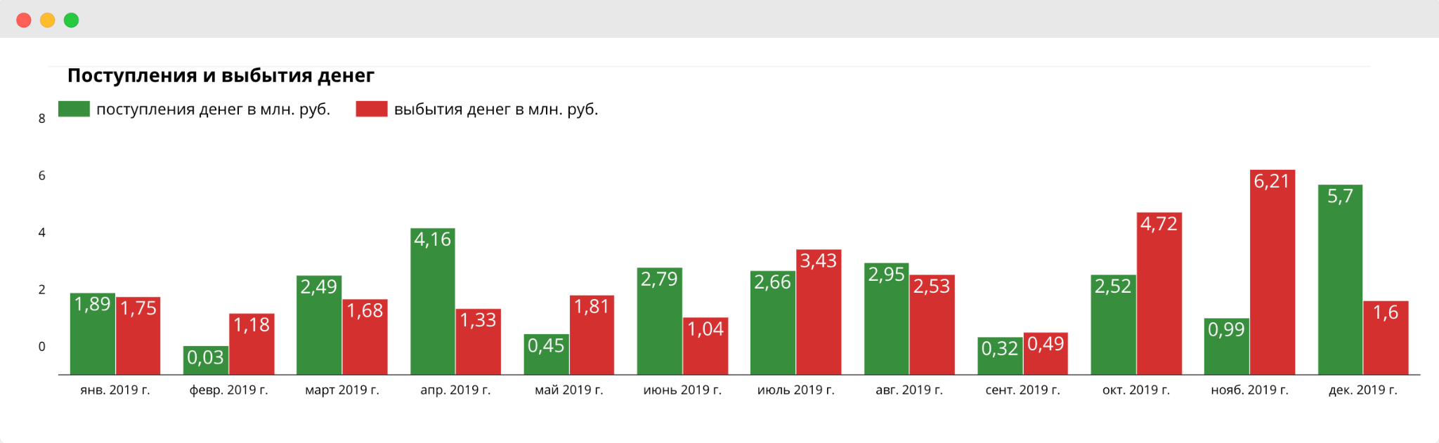 Обычно расходов больше, чем доходов, когда у компании сроки выплаты дебиторки не бьются с выплатами кредиторки. То есть ей платят позже, чем платит она. Например, компании нужно платить кредит 1 мая, но деньги от клиентов она получает только 7 мая, — тогда красный столбик на этой неделе будет выше зеленого.