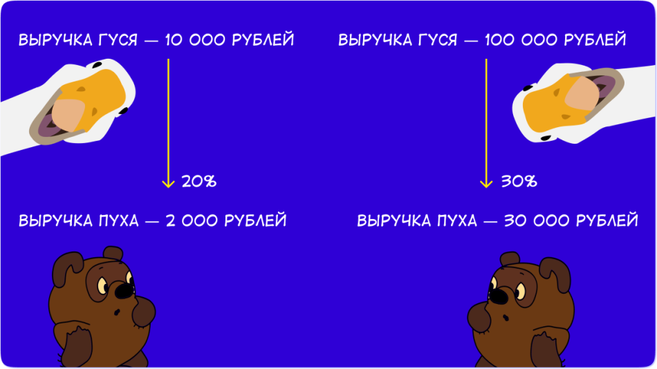 Чтобы не работать в убыток, компания договорилась с поставщиком на плавающую закупочную цену: чем меньше выручка, тем меньше закупочная цена, но до определенных пределов. При этом если выручка растет, то и закупочная цена тоже увеличивается — по сути компания делится с поставщиком частью выручки.