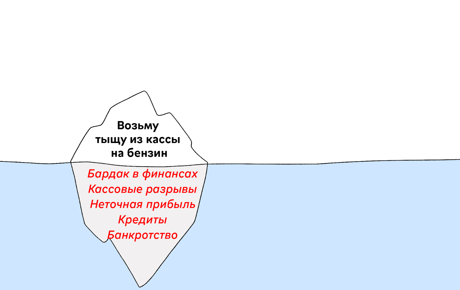Окей, допустим собственник работает в своей компании гендиректором и не назначает себе зарплату за это. Но жить-то ему на что-то всё равно нужно: платить за квартиру, покупать продукты, заправлять машину. Если зарплаты нет, велико желание залезть в кассу и взять, сколько нужно, или оплатить бензин корпоративной картой. Ведь бизнес — собственника, а значит и деньги его.