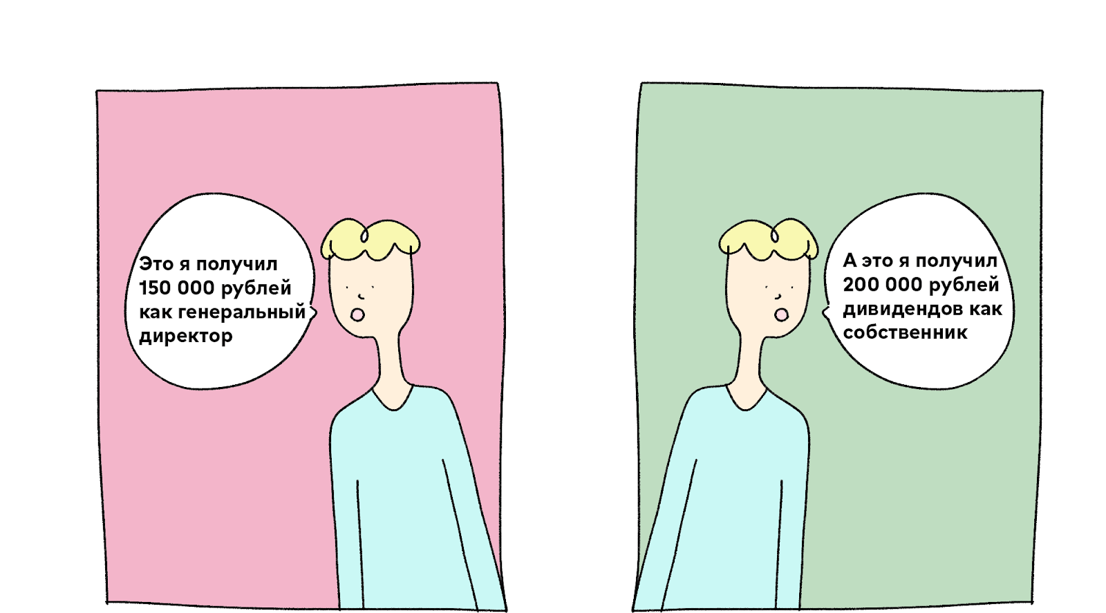 С разделением ролей владелец четко понимает, за что он получает деньги от компании: зарплату — за работу гендиром, а дивиденды — за инвестиции в компанию. А компания понимает, какие расходы несет и на что.