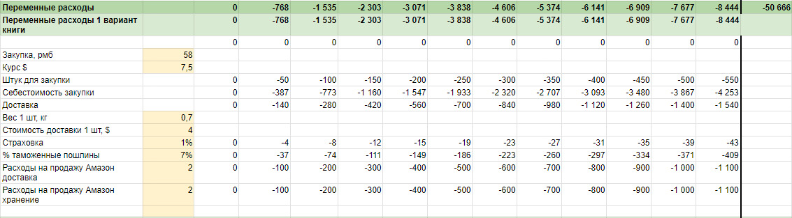 ↑ Так выглядят переменные расходы в финмодели