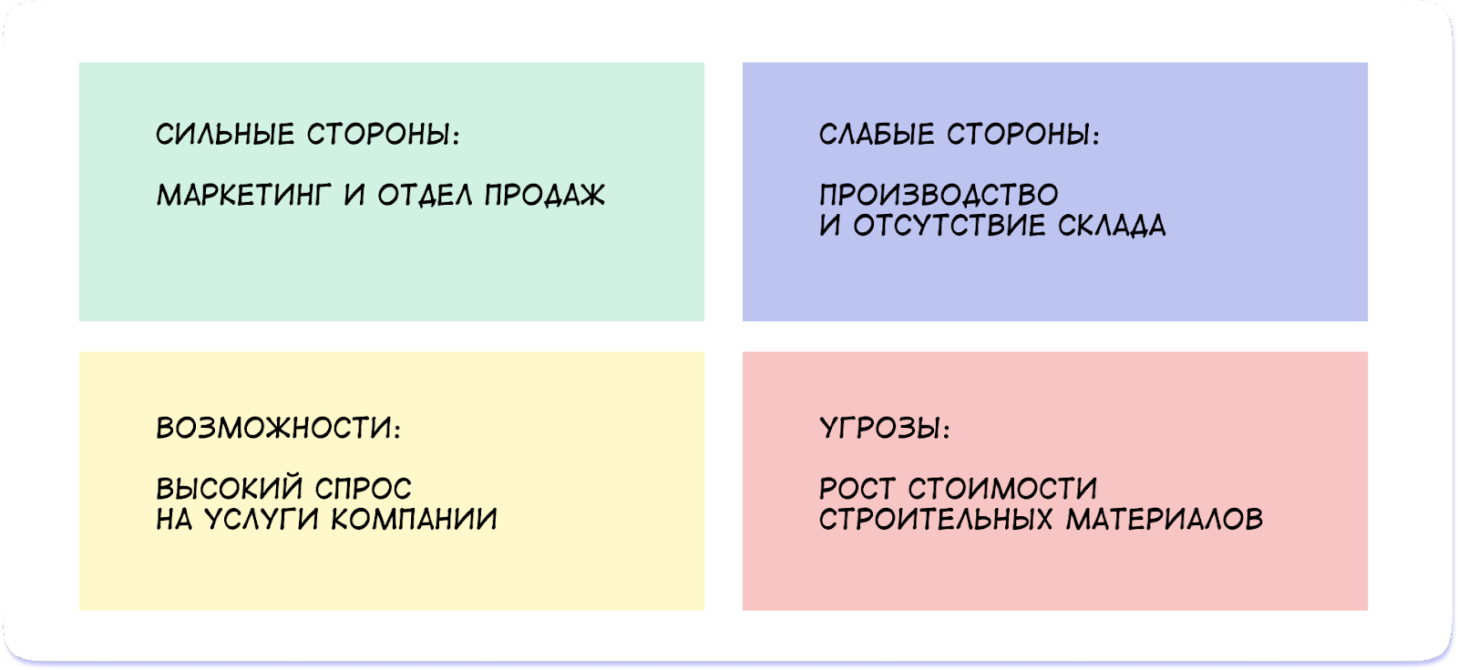 На примере строительного бизнеса расскажем, как работает SWOT-анализ ↓