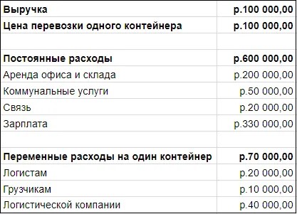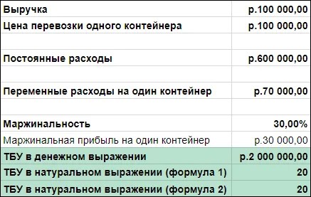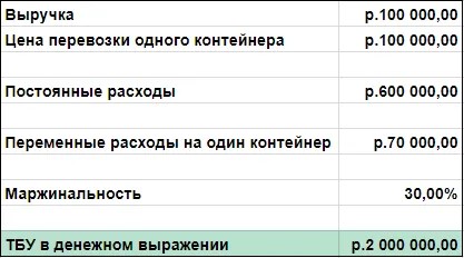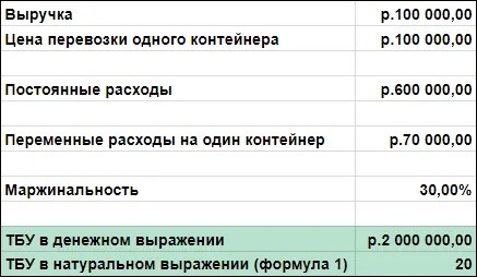 Рассчитаем ТБУ на простом примере. Транспортная компания перевозит контейнеры. ↓