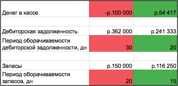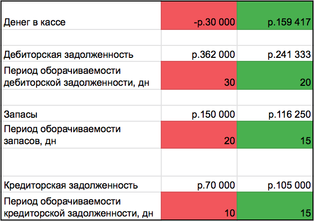 Финансовая модель поможет понять, как разморозить деньги. А точнее — каких показателей оборачиваемости запасов и дебиторской задолженности нужно достичь, чтобы в кассе всегда были деньги. Чем они меньше, тем лучше.