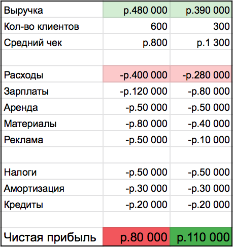 Например, у нас был клиент — Евгений Дулецкий из Братска. У него барбершоп. Он постоянно работал над привлечением новых клиентов, даже давал скидку 20% на первое посещение. А когда составил финансовую модель, понял: на постоянных клиентов уходит меньше рекламного бюджета, да и скидку им давать не нужно.