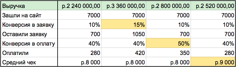 В данном случае, конверсия в заявку. Значит, надо в первую очередь работать над ней