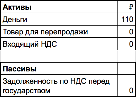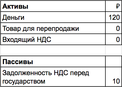 А теперь вспоминаем — 10 ₽ НДС уже начислили, когда покупали розу, и эту десятку государство нам задолжало. Значит, мы стали должны государству только 10 ₽, а не 20 ₽. Поэтому наша задолженность перед государством по НДС увеличивается только на 10 ₽.