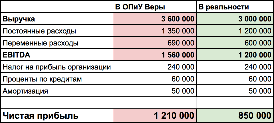 Чистая прибыль Веры на 360 000 ₽ меньше, чем она думает