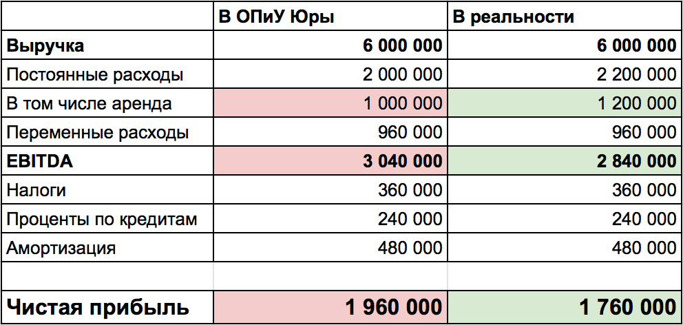Юра видит счета-фактуры арендодателя, где указан НДС. И начинает по ошибке вычитать его из расходов на аренду в ОПиУ. А из выручки не вычитает. Ведь в счетах, которые он выставляет покупателям, НДС нет. Вычитает НДС или нет — выручка одинаковая. А расходы уменьшаются на сумму НДС. Это ошибка. Прибыль получается завышенной. Посмотрим на примере годовой прибыли Юры.