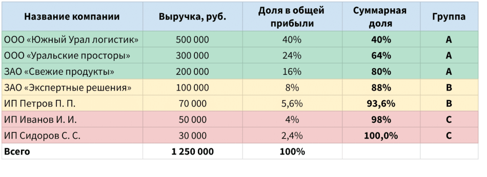 Когда мы планируем продажи, принцип Парето, или правило 80/20, очень хорошо работает для принятия решений. Этот подход помогает разделить товары на три группы, чтобы понимать, на что стоит делать основной акцент: