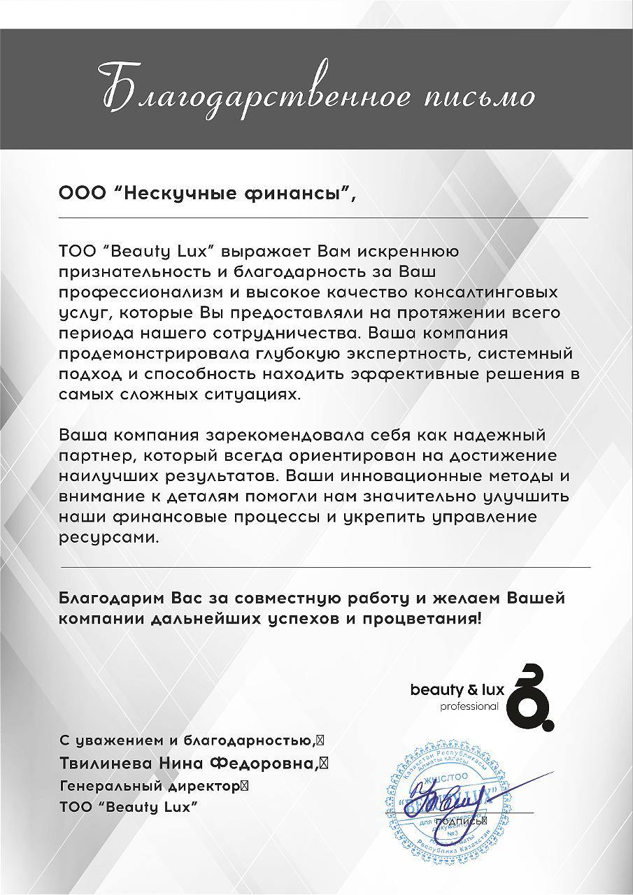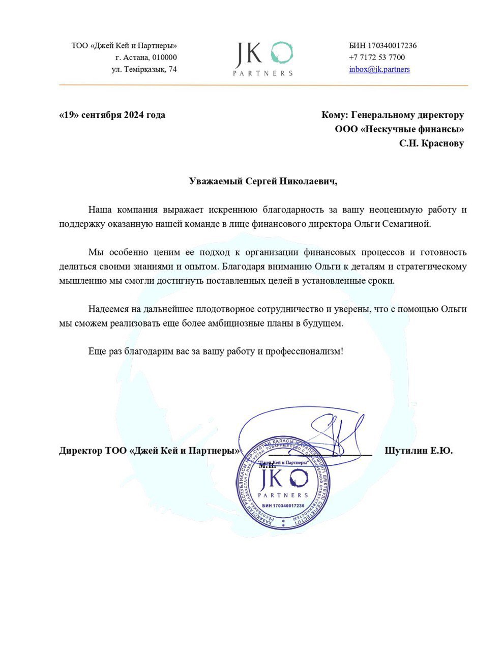 - От имени Компании ALTERA выражаем благодарность и признание Компании "Нескучные Финансы" в лице Стороженко Екатерины за высокопрофессиональное финансовое сопровождение, оперативное и результативное решение поставленных задач любой сложности